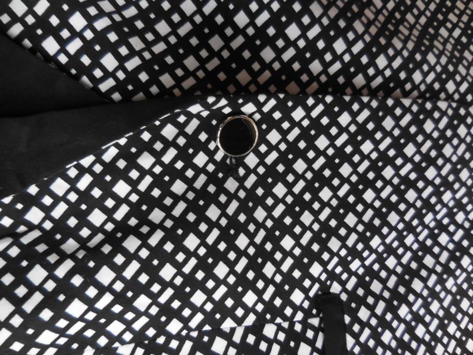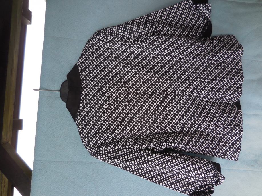 Nova, zelo elegantna bombažna črno bela jakna s 3/4 rokavi. Je podložena in ni raztegljiva.