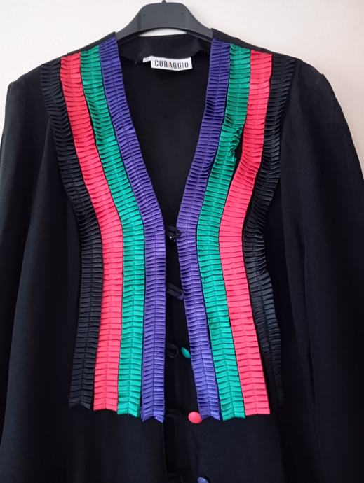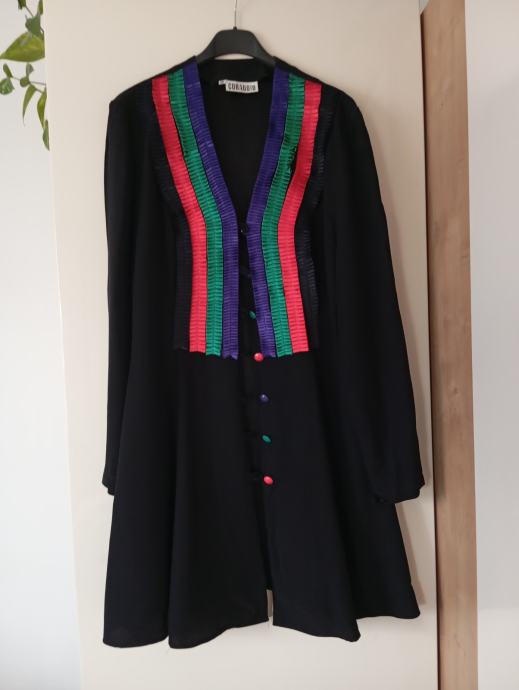 Nošena max 2x, kot nova, zelo elegantna, podložena, ni raztegljiva. Od ene pazduhe do druge meri 46cm, pas je 40cm, dolžina je 85cm. Ne menjam, ptt ni vključena v ceno