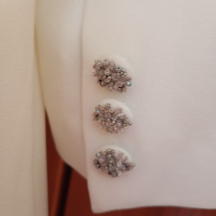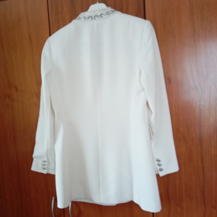 Nošen samo 1x za posebno priložnost, podložen, ni raztegljiv, od ene pazduhe do druge meri 48cm, dolžina je 80cm, ne menjam, ptt ni vključena v ceno