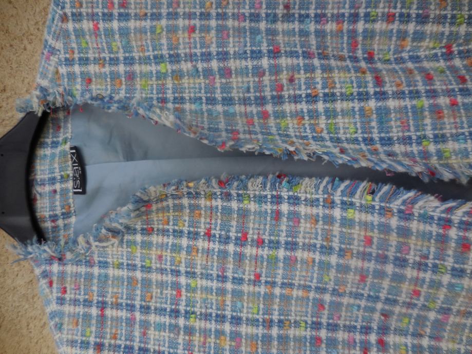 Samo kupljena, pozabljena v omari, je podložena, ni raztegljiva, na sprednji strani ima 2 žepa.