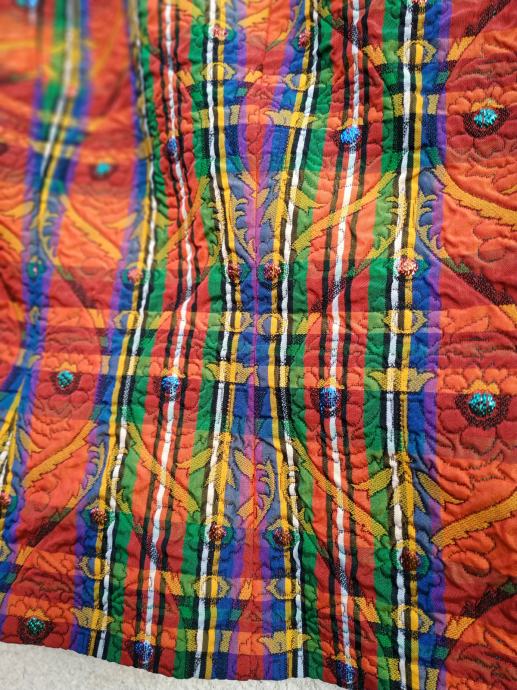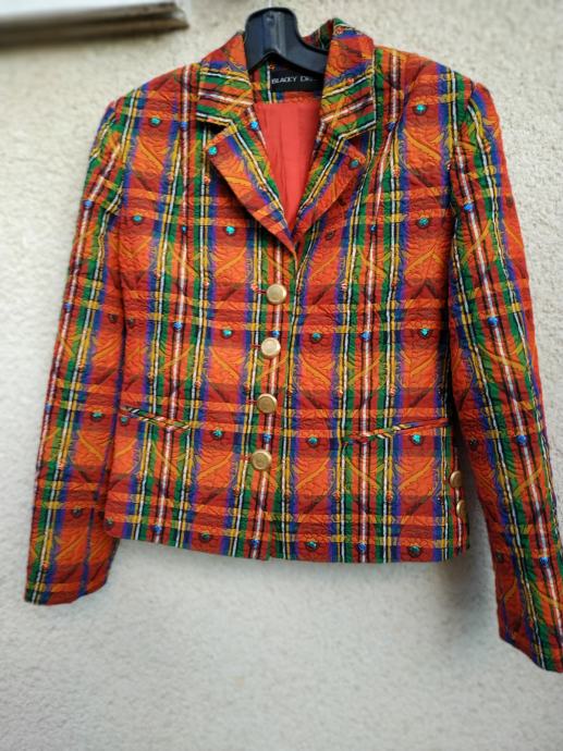 zredno kvaliteten komplet kupljen v tujini, kot nov, podložen, ni raztegljiv, z zlatimi gumbi in svetlečimi pikami.
