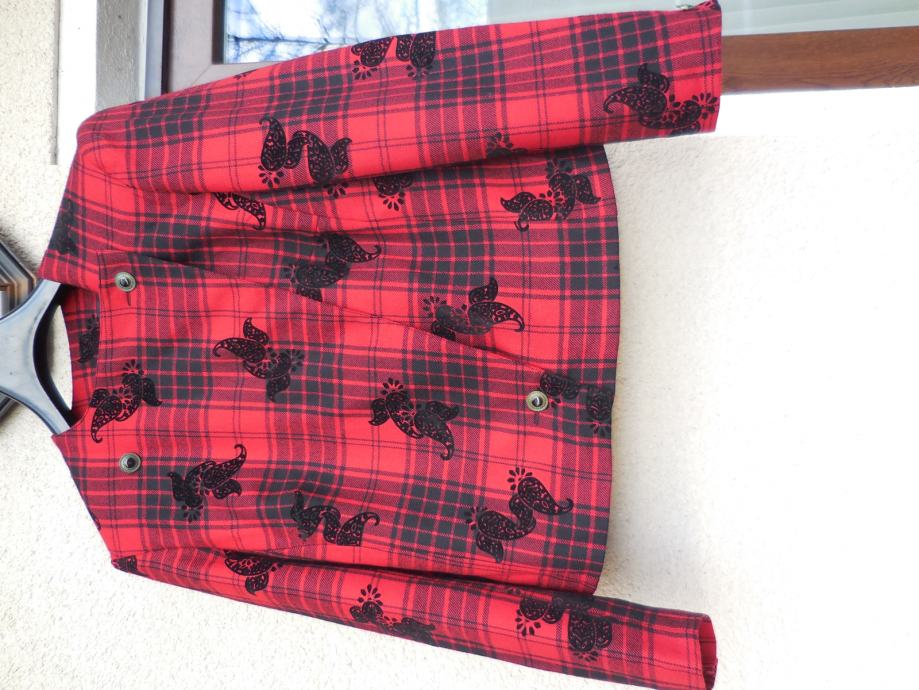 Nenošena karo jakna (pozabljena nekje v omari), izredno kvalitetne izdelave in materiala (100% runska volna)., podložena, zapenja se ob strani, z notranjimi gumi, tako da sta vidna samo dva zunanja gumba, je nekoliko temnejše barve kot na sliki. Primerna je tudi za velikost 40.