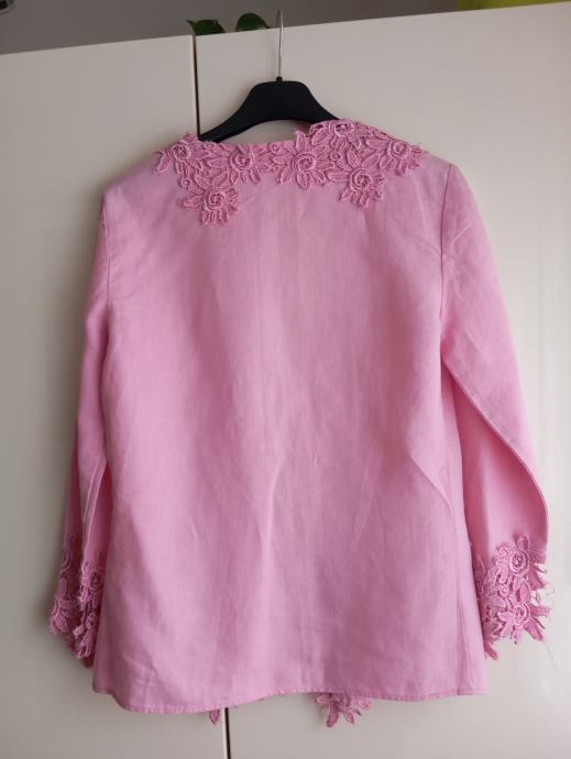 Zelo lepo ohranjen, bombažen, ni raztegljiv, brez zapenjanja, od ene pazduhe do druge meri 43cnm dolžina je 56cm, od enega ramenskega šiva do drugega je 37cm, ne menjam, ptt ni vključena v ceno