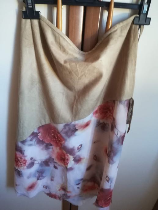 Prehoden lahkoten suknjič, iz tanjšega materiala, ki je podobem semišu in krilo iz prav takašnega materiala. Oboje L velikost (42).