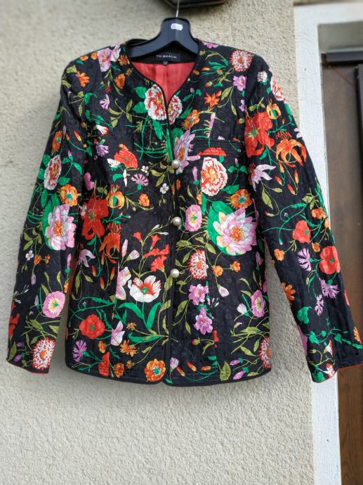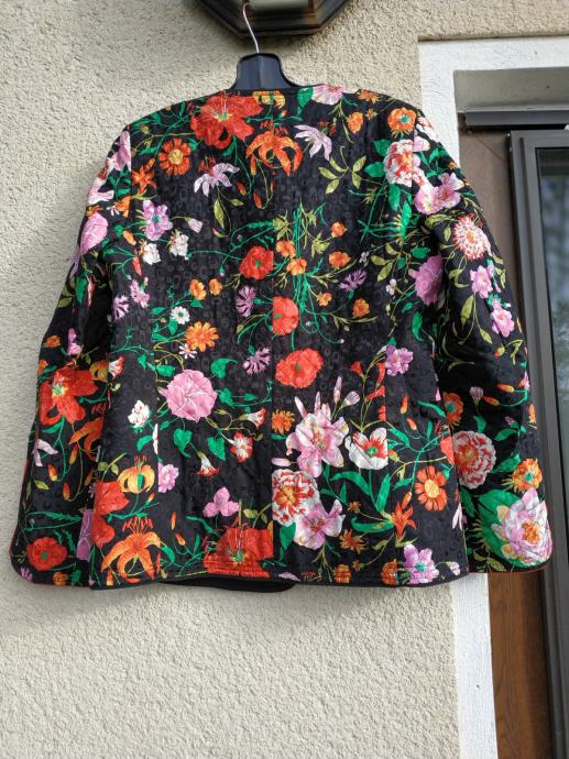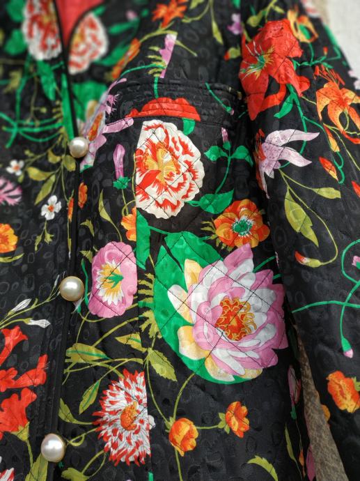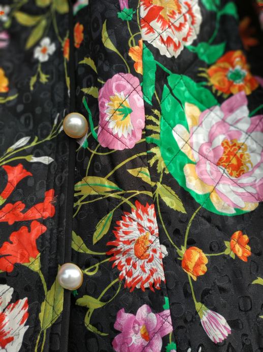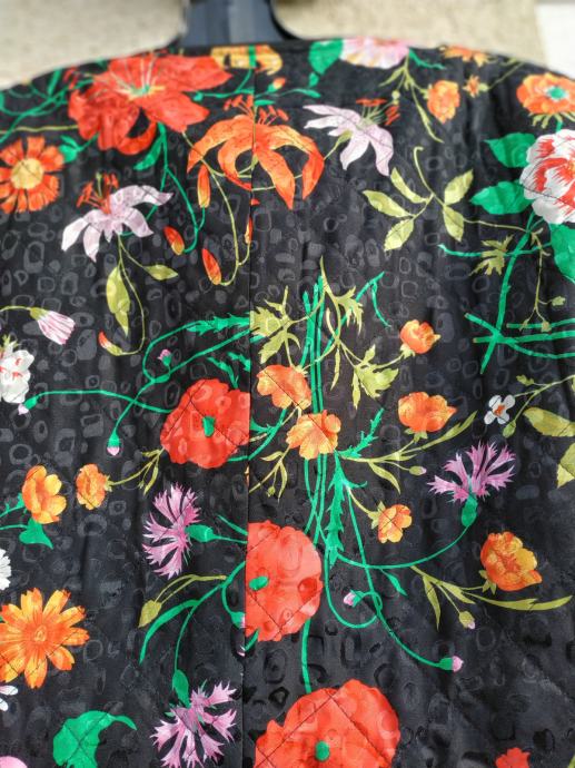 Čudovita črno cvetlična jakna iz 100% svile, brez znakov nošenja, kot nova