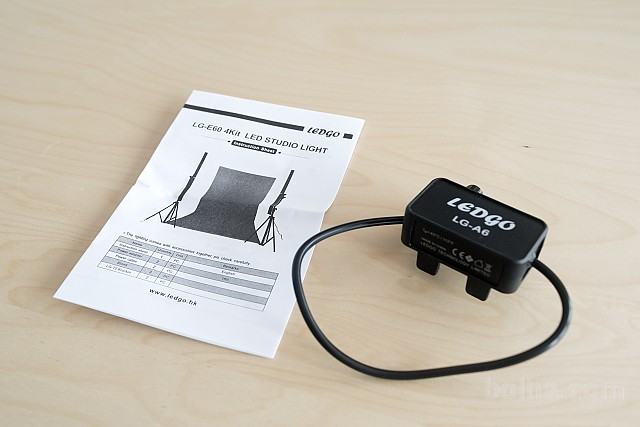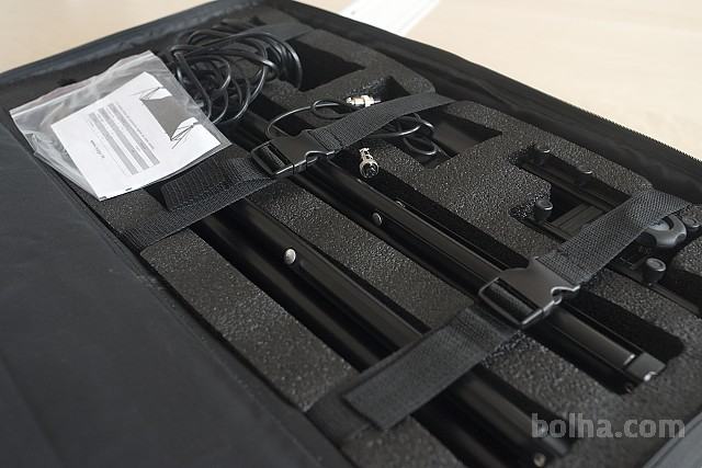 Ledgo LG-E60 4kit led luči rabljene parkrat. Idealne za osvetlitev ozadja (green screen) in blogerje, s škatlo in papirji, kupljene pri Fotospecialisti. CRI index 95. Zraven je dodaten dimmer za luči.