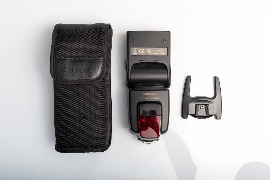 Bliskavica ima priloženo ohišje, stojalo in dodatna vratca za pokrov baterije (škatle nimam).