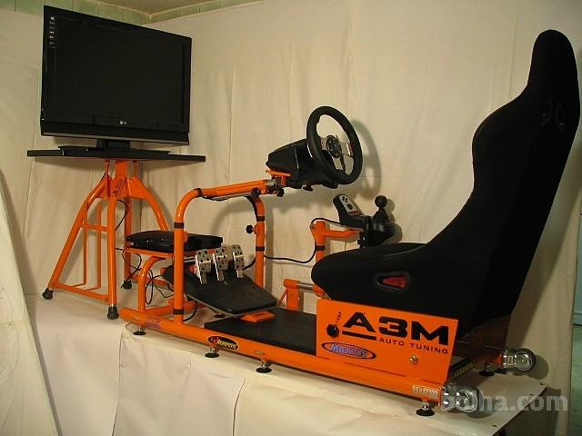 Konzola, za video igrice z vso opremo za simulacijo dirkanja. V kompletu je 3D TV Samsung 50" Dodam več CD-jev. Možne nastavitve za velikost uporabnika, naprej, nazaj, gor, dol enako tudi sedež, unikatni izdelek v domači delavnici! Možna uporaba 0d 5 do 99 leta starosti!