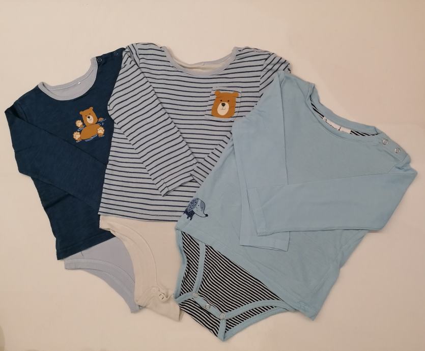 Komplet 3 bodijev z majico z dolgimi rokavi, vel. 98-104