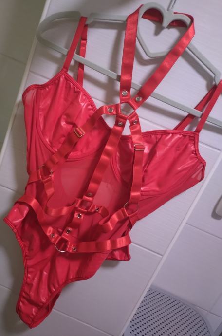 Prodam novo spodnje perilo v rdeci barvi. Se vedno z etiketo. Velikost: st. XL (ampak ne ustreza za to stevilko). Bi rekla, da je velikost primerna za st. M-L. Kosarica je primerna za st. C. Zelo prilagodljiv komplet perila. Naramnice so nastavljive. Primerno tudi kot darilo za popestritev. Ob nakupu podarim nove tangice v crni barvi.
