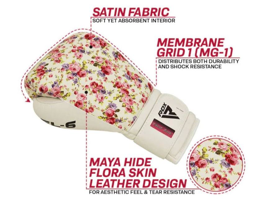 Boksarske rokavice FL-6 predstavljajo prefinjenost in natančnost pri vsakem udarcu, hkrati pa ohranjajo elegantno estetiko. Od vrhunskega notranjega oblazinjenja do zunanjega usnja Maya Hide. Vzdržljivost teh rokavic Membrane Grid 1 (MG-1) je neprimerljiva, saj zagotavlja zaščito pred udarci z večplastno peno in kalibrirano ploščo za razprševanje udarcev. Za oprijem in zračnost perforirane luknje in denzotron oprijem zagotavljajo zanesljivo delovanje.