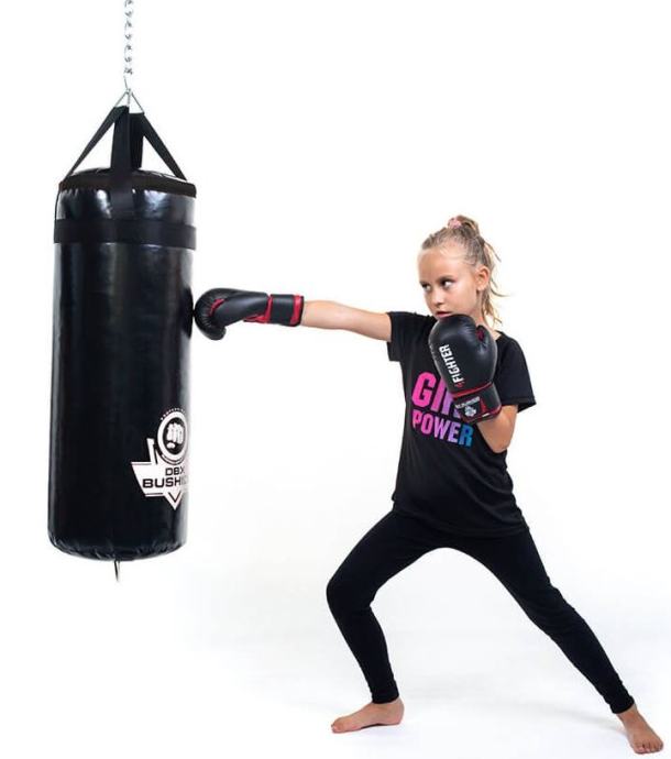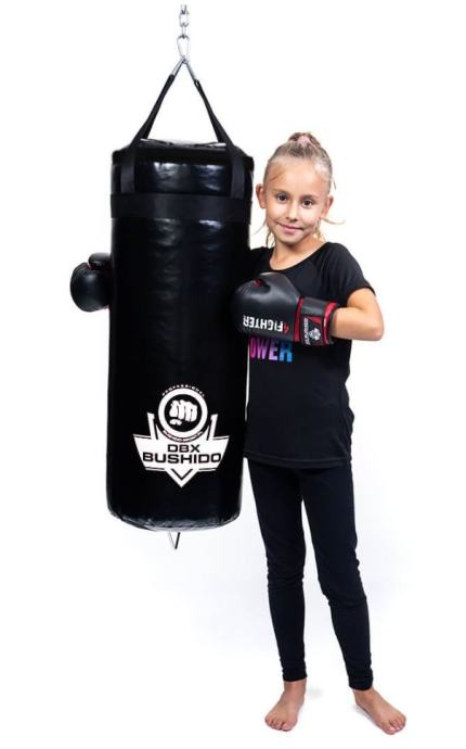 Otroška boks vreča velikosti 80 x 30 cm. Vreča ima težo približno 15 kg za najstnike od 5 do 14 let. Pri izdelavi so uporabljeni popolnoma isti materiali kot pri drugih vrhunskih Bushido vrečah za boks. To zagotavlja visoko kakovost vreče, ki zdrži veliko let usposabljanja. 4 močni trakovi in varnostni pasi prenesejo breme do 300 kg. Napolnjena je s posebej pripravljenim penastim granulatom, ki je mešanica več vrst izbranih pen, filca in gumijastih granul. Zaradi te kombinacije je vreča popolnoma napolnjena do roba.