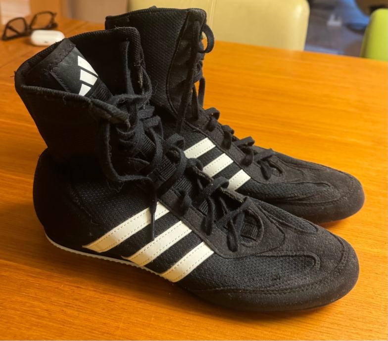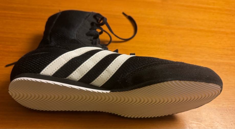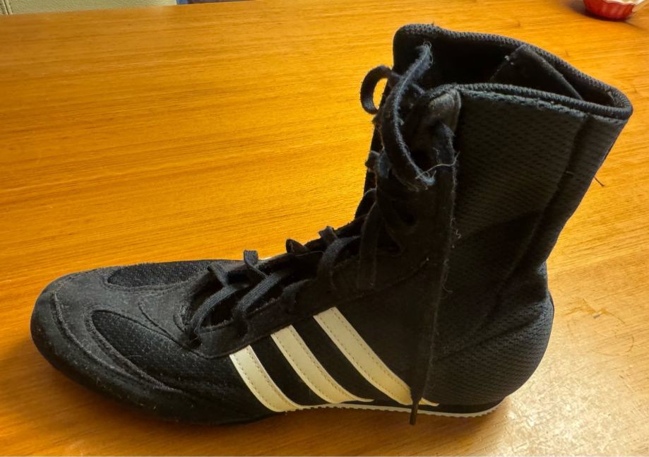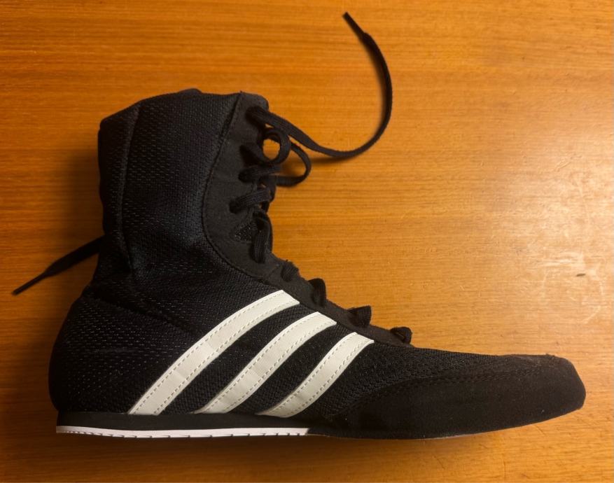 Prodajam rabljene boksarske superge adidas boxhog II. Superge so izdelane iz kombinacije mrežastega materiala in semiša, idealne za boksarske treninge. Kljub uporabi so še vedno v odlicnem stanju in nudijo odlično oporo ter stabilnost med treningi boksa (https://www.decathlon.si/p/998765375-114951-crni-boksarski-cevlji-boxhog-ii.html)