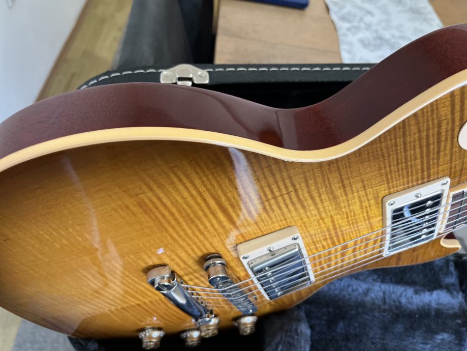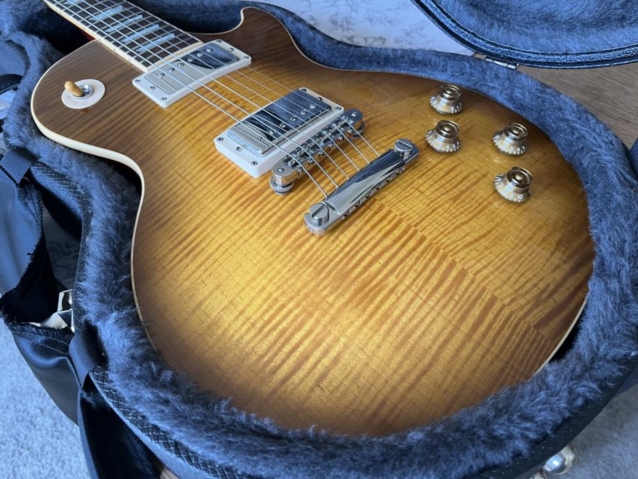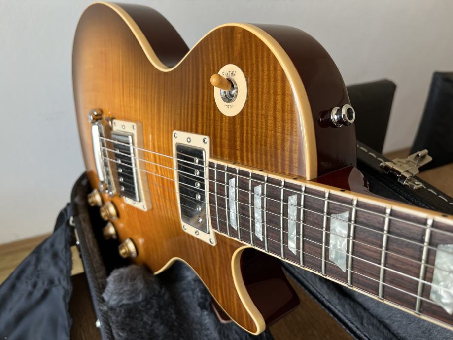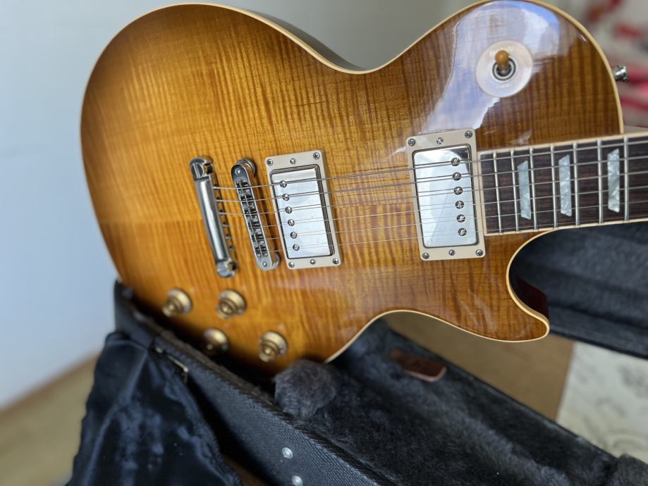 Prodajam odličen Gibson Les Paul Standard iz leta 2004 z originalnim kovčkom in pickguardom, ki ni bil nikoli nameščen. Neck pickup je bil zamenjan z Dimarzio DP 194 Paf Classic, bridge pickup pa je originalni Gibson BurstBucker Pro (Alnico V).Vrat je '50's po specifikacijama...