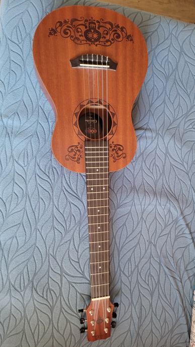 Mini kitara potovalne velikosti iz mahagonija + vreča + pas