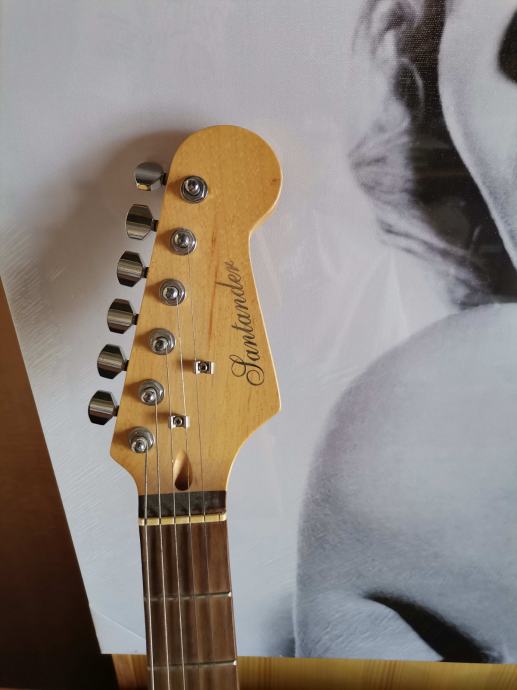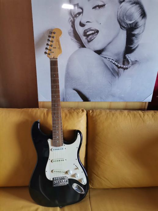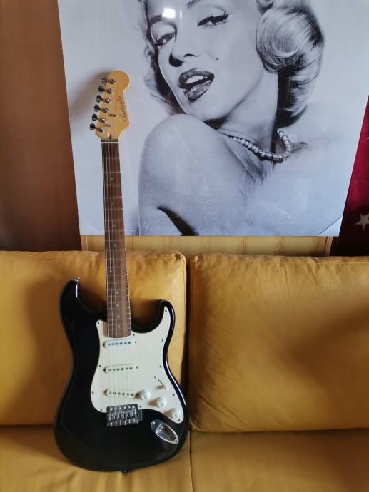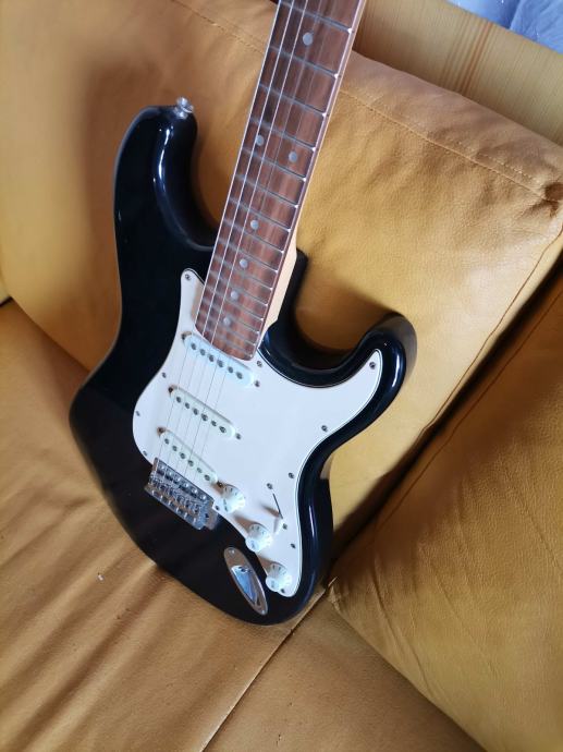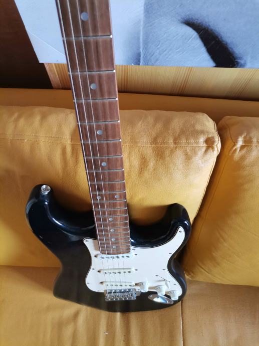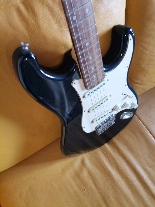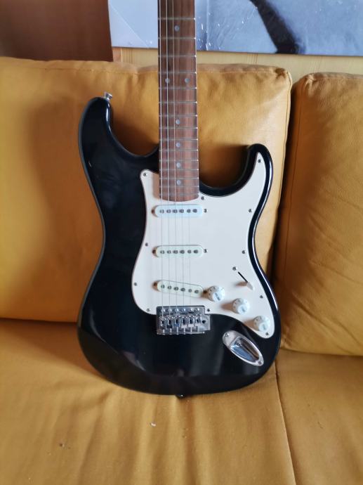 Električna kitara, oblika stratocaster, črnobela, lep zvok, ohranjena.