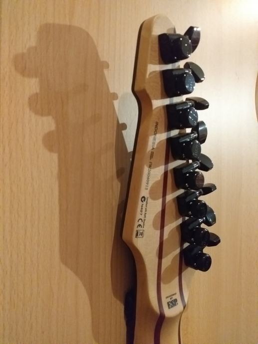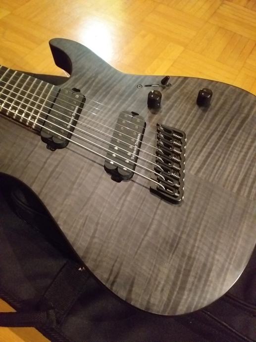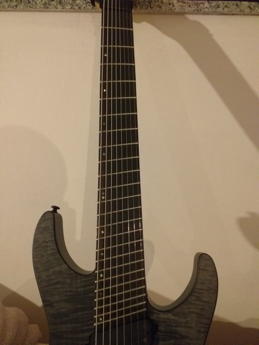 Prodam osem-strunsko multiscale LTD kitaro s Seymour Duncan Nazgul in Seymour Duncan Sentient pasivnima magnetoma, 25,5 - 27 inchev dolgo skalo, možnostjo preklopa Sentient magneta na single-coil s push-pull funkcijo, Hipshot hardtail mostom, LTD locking uglaševalnimi vijaki, trupom iz mahagonija, vratom iz javorja, ubiralko iz ebenovine.