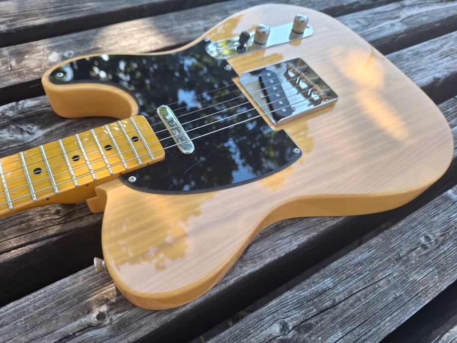 En najboljših telecasterjev na trgu, povsod odlično ocenjen in primerljiv kar s Fender Custom Shop serijo (Andertons Rob Chapman Blindfold Test Telecaster Squier vs Fender vs Custom Shop). Lepo ohranjen, letnik 2014, barve Butterscotch blonde.