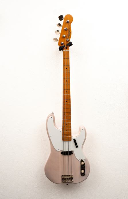 Električni bass, kopija petdesetih - classic vibe Fender, s split coil pickup-om. Star 1 leto in pol, pravkar menjane strune, nastavljen vrat in nižan action.