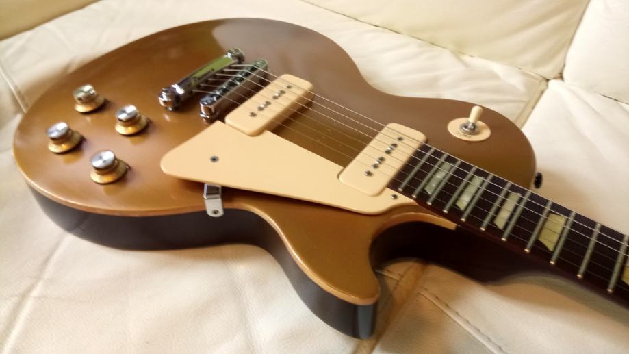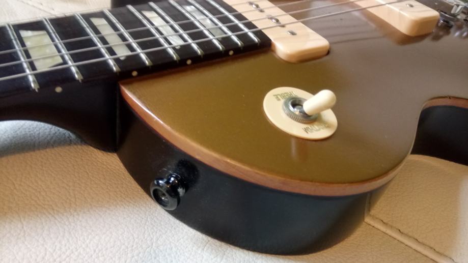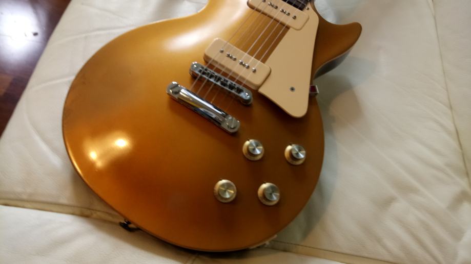 Gibson les paul Studio '60s worn goldtop v top-mint stanju. Made in USA 2011. Worn je tovarniško postarana-relic-aged kot v Custom shopu. Na robovih je že lepa zelenkasta patina pod zlato barvo in prihaja na površino. Prečke nerabljene, vrat popolnoma raven. Trup mahogany, top maple, neck mahogany, fretboard rosewood, pickups P-90, tuners vintage deluxe with keystones buttons, ABR-1 bridge, gold top hats gumbi. Original je bil zraven gigbag, jaz sem dodal hard case(kovček). Lahko dam original gigbag-cena ista.. Brez menjav.