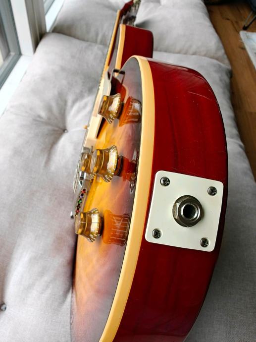 Na prodaj je nekaj zelo posebnega. Ponovna izdaja 1959 iz dobrega Gibsonovega leta (2011). Lepi plameni krasijo zgornji del. Tu in tam ima nekaj udarcev (naravno staranje), vendar je splošno stanje res odlično. Z veseljem sprejmem menjalne ponudbe, zato vas prosim, da mi kaj ponudite.