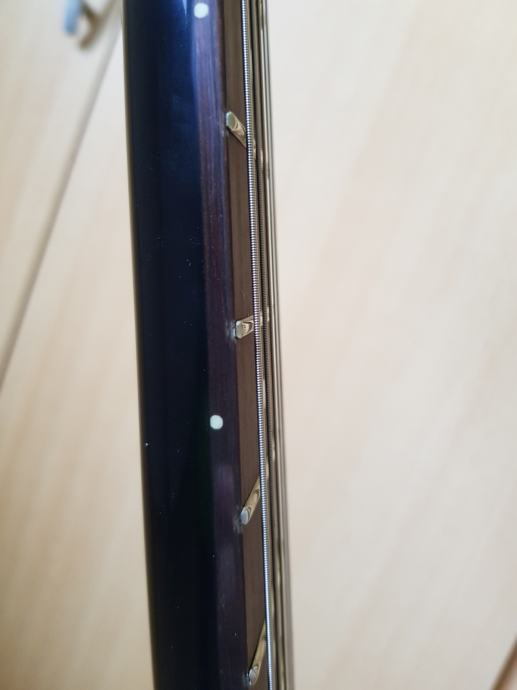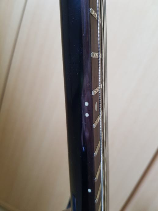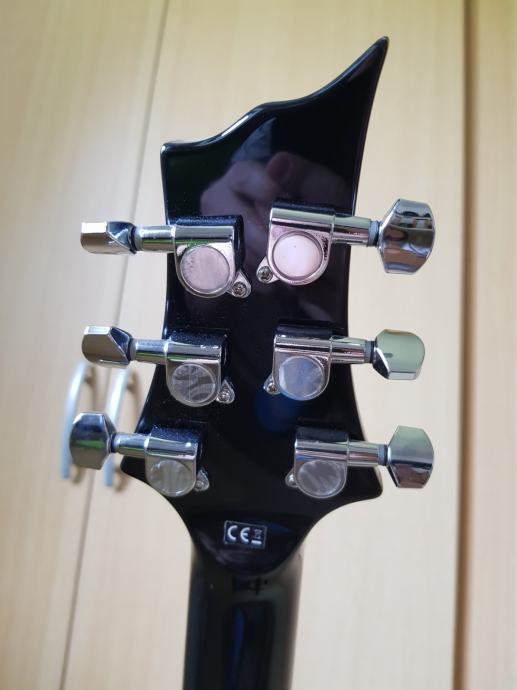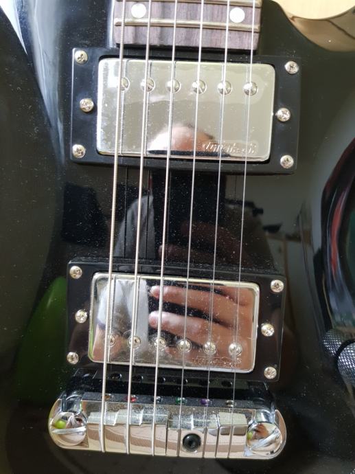 Kitara je kot nova, saj so na njen še nalepke na tunerjih in magnetih.
