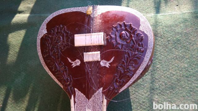 Prodam ročno narejen indijski sitar. Glasbilo ima površinske poškodbe ohišja, prav tako nima navitih strun.
