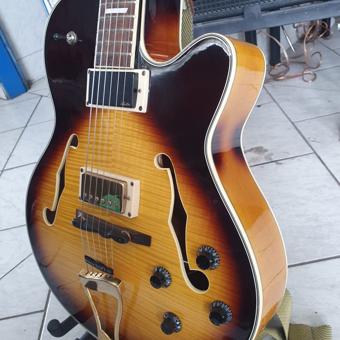 kitara je zelo lahka in prijetna za igranje , in ima zelo lep zvok pred krakim sem jo dal poservisirati Tomaž Šinko TON ki je zamenjal vse potenciometerje in kable , obnovil vrat z novimi prečkami in novimi strunam . prodam najboljšemu ponudnikom , imam seveda tudi račun in specifikacijo vseh delov ki so bile zamenjane