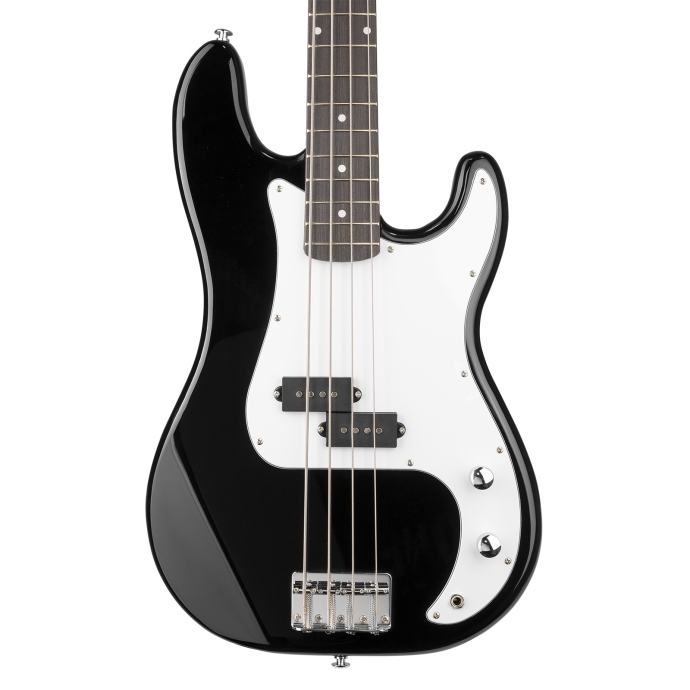 V središču kompleta je full-size bas kitara klasičnega dizajna, elegantnega videza in udobne igralske ergonomije. S basswood telesom, hard maple vratom, 21 prečkami in odprtimi mehanikami ponuja stabilnost, močan basovski ton in zanesljivost, ki jo pričakuje vsak basist. Versatilni magneti poskrbijo, da bas kitara odlično zveni v rocku, funku, popu ali bluesu.