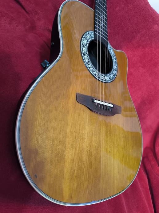 Prodajem očuvanu Ovation Baladeer 1861, shalow (tanka zdjela), 1984 godina, profi gitaru za gažere, idealna kome smeta veliki trbuh, ima nekoliko nepravilnih risova u laku - ne na drvetu, ravan vrat, niske žice, GigBag, broj 33x xxx, bez zamjene