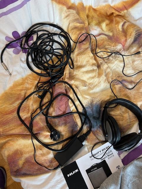 Zraven so tudi slušalke, dolg kabel med ojačevalcem in kitaro ter torbo za kitaro.