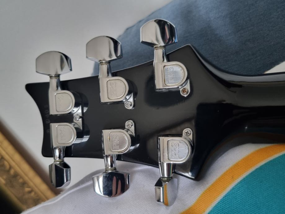 Prodam kitaro PRS, model Standard 24, letnik 1990. Od Custom 24 se razlikuje po tem, da je trup v celoti iz mahagonija (Custom je mahagonij+javor). Redkost na našem trgu, sploh za takšno ceno. Zakaj pravzaprav takšna cena? Kitara je bila veliko igrana, pravi »workhorse«. Imela je zlomljeno in profesionalno popravljeno glavo – popravilo je praktično neopazno in nikakor ne vpliva na funkcionalnost (mojster Šinko je popravilo opazil šele ko je bila kitara drugič pri njemu na setupu). Prav tako ima kitara nekaj prask in bušk.