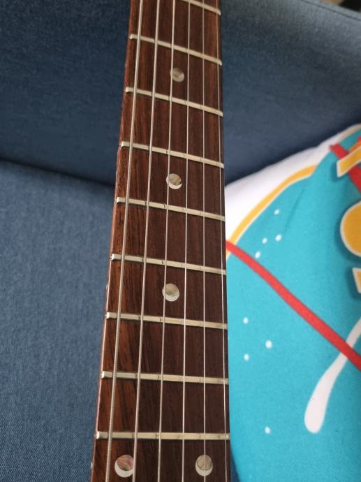 Prečke bodo za zamenjat, vendar to raje prepustim novemu lastniku. Potenciometri občasno malo zaškrtajo, saj kitara dolgo ni bila igrana.
