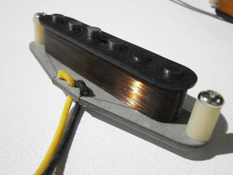 Neck pickup is Fender FAT 50s clone - 6kOhm with vintage correct AWG42 HEAVY FORMVAR wire. Wax potted.