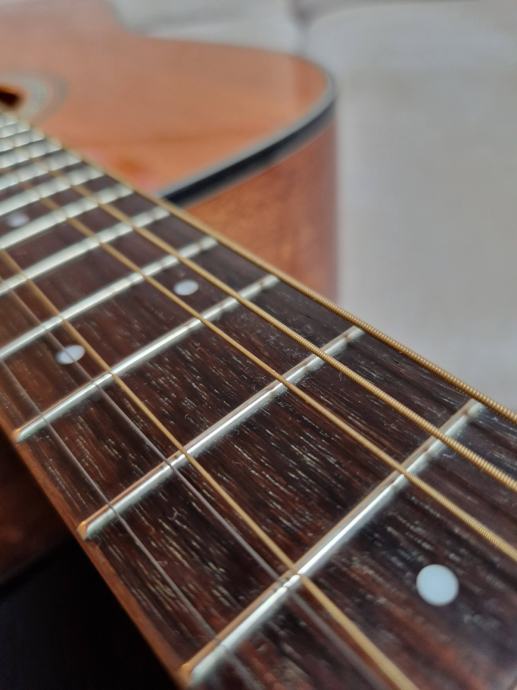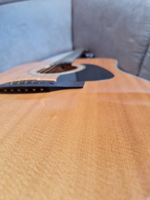 Prodajam odlično uigrano akustično kitaro Takamine GD30 NAT, kupljena leta 2015 v trgovini Music Max. Kitara ima vrhnjo ploskev iz smreke, hrbtni del in stranice iz mahagonija, kar ji daje topel in bogat ton. Vrat iz mahagonija z ubiralko iz palisandra omogoča udobno igranje in hitro odzivnost.