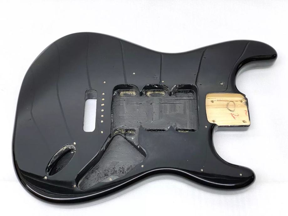 Telo kitare Stratocaster, črno, verjetno jelša. Novo. Za vaš projekt gradnje lastne kitare.