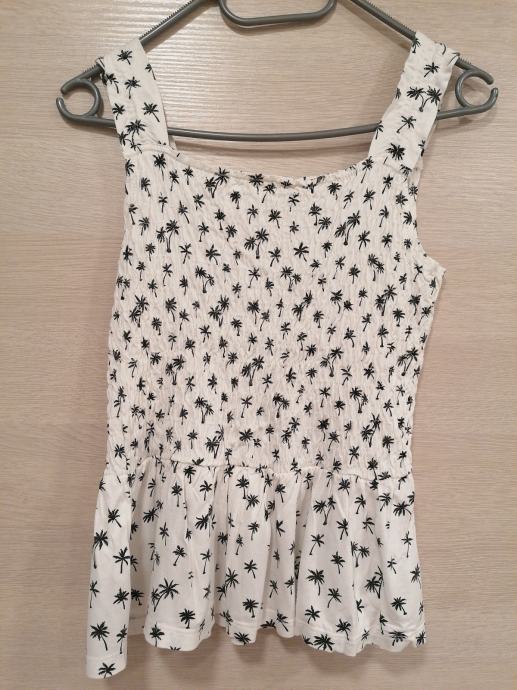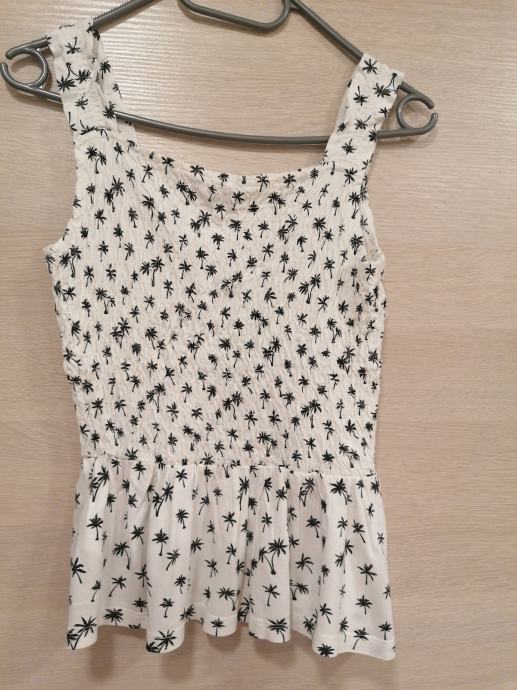 Kratka majica v beli barvi s črnimi palmami iz 100% viskoze. Dolžina majice z naramnicami vred je 52 cm, od pazduhe do spodnjega roba pa 32 cm. Možna dostava na Izlake ali v Zagorje, lahko pa pošljem tudi po pošti. Oglejte si še ostale moje oglase po ugodnih cenah.