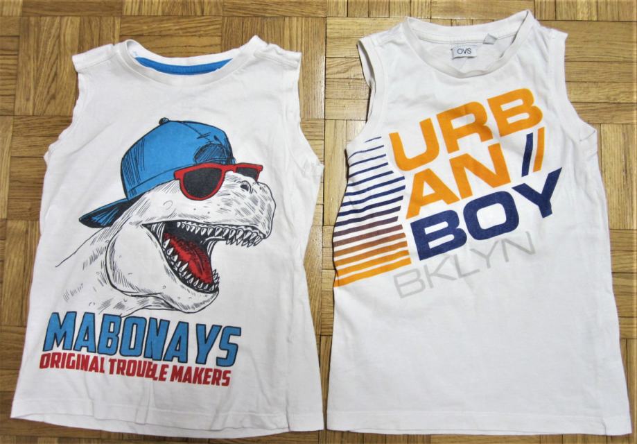 Prodam dobro ohranjene majice brez rokavov, vel. 110. Majice so brezhibne, nošeni pri enem otroku. Cena za komplet, komplet vsebuje 2 kos.