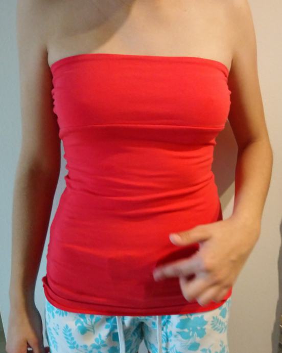 - Rdeč top, znamke Two Way. Velikost S, dolžina 47 cm, širina čez prsi 33 cm. Bombaža in elastan.