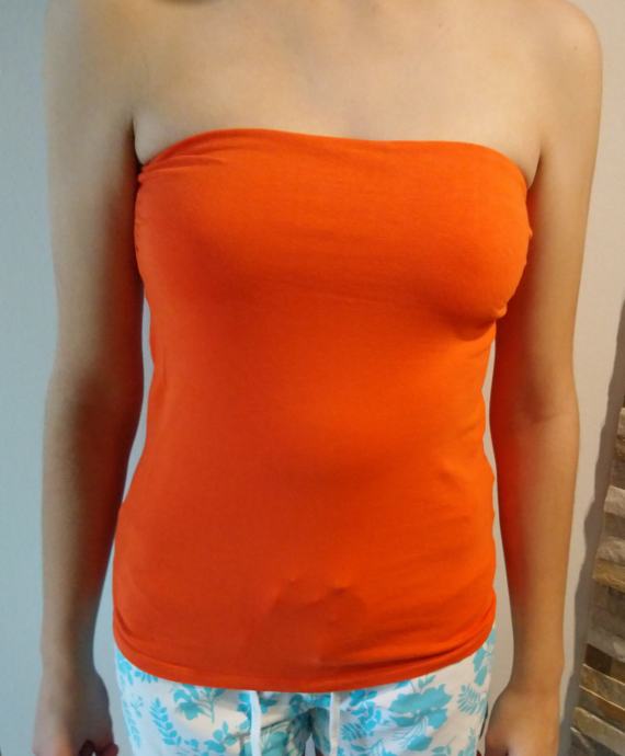 - Oranžen top, znamke Ann Christine. Velikost S, dolžina 42 cm, širina čez prsi 35 cm.95 % bombaža in 5 % elastana.