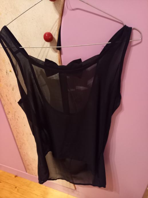 Prodam novo, nikoli nošeno prosojno črno majčko brez rokavov, ki ima na hrbtni strani mašnjice. Velikost 36.