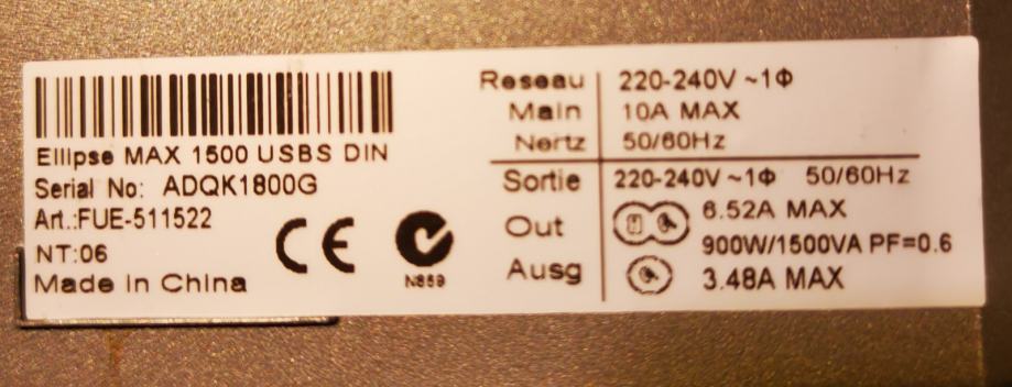 UPS ETN Elipse 1500 inverter zaščita in brezprekinitveno napajanje. Baterije je potrebno zamenjati 2 x 12V