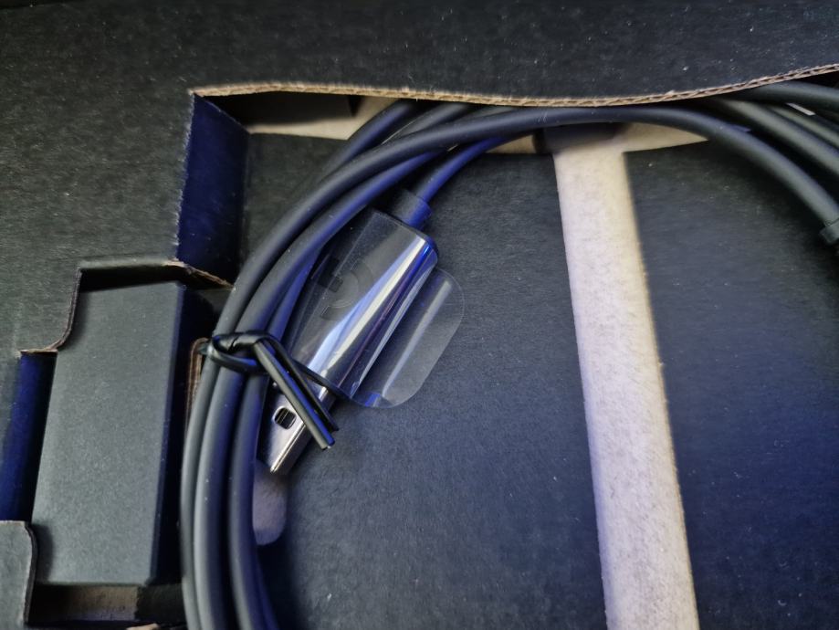 Zraven pridejo vsi originalni dodatki, torej škatla, papirji, dongle, kabel (ki celo še ima zaščitno plastiko na sebi).