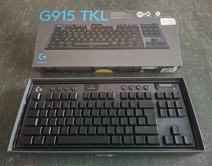Naprodaj je vrhunski set Logitech, sestavljen iz Logitech G915 TKL brezžične gaming tipkovnice ter žične slušalke Logitech G Pro X Gaming 7.1