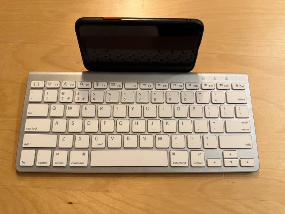 Omoton tipkovnica za iPad ali iPhone z vgrajenim zložljivim stojalom (glej slike)
