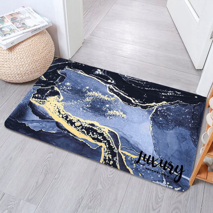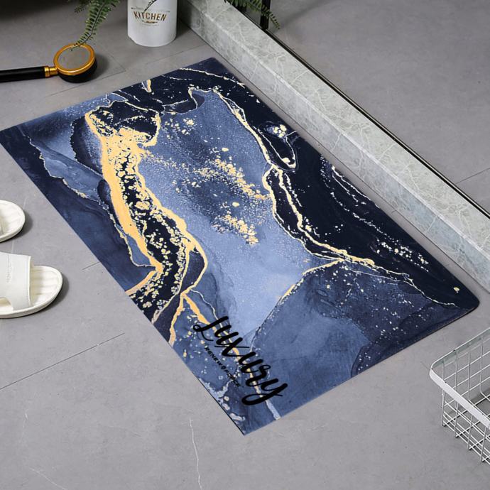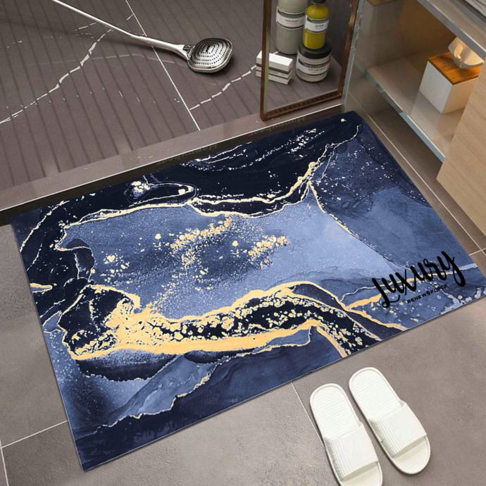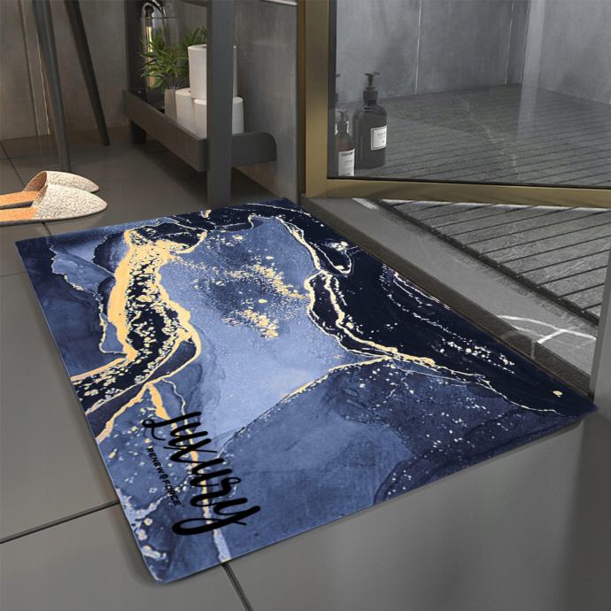 ELEGANTNA OBLIKA Naša predpražnica ima eleganten dizajn, ki posnema marmor z zlatimi detajli. Dodajte svoji kopalnici pridih razkošja!