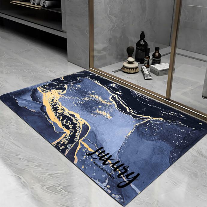 Popestrite in zaščitite svojo kopalnico z elegantno kopalniško preprogo v vzorcu mornarskega marmorja. Poleg modernega videza, ki se lepo poda različnim slogom opreme, ta preproga nudi tudi mehko in udobno podlago, odlično vpojnost ter nedrsečo podlago za večjo varnost po tuširanju ali kopanju.