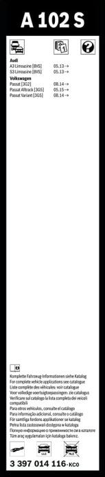 - šifra proizvajalca: 3397014116, 3 397 014 116, A102S, A 102 S