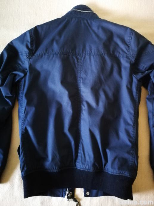 Jakna atraktivnega izgleda, z visokim ovratnikom in dvojno zadrgo.