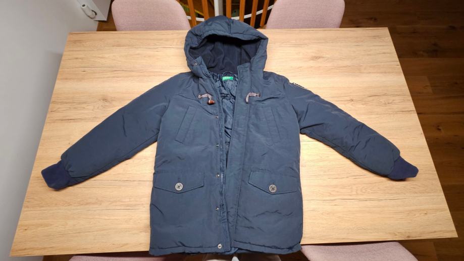 Je temno modre barve, s kapuco in trenovskima večjima žepoma spredaj.